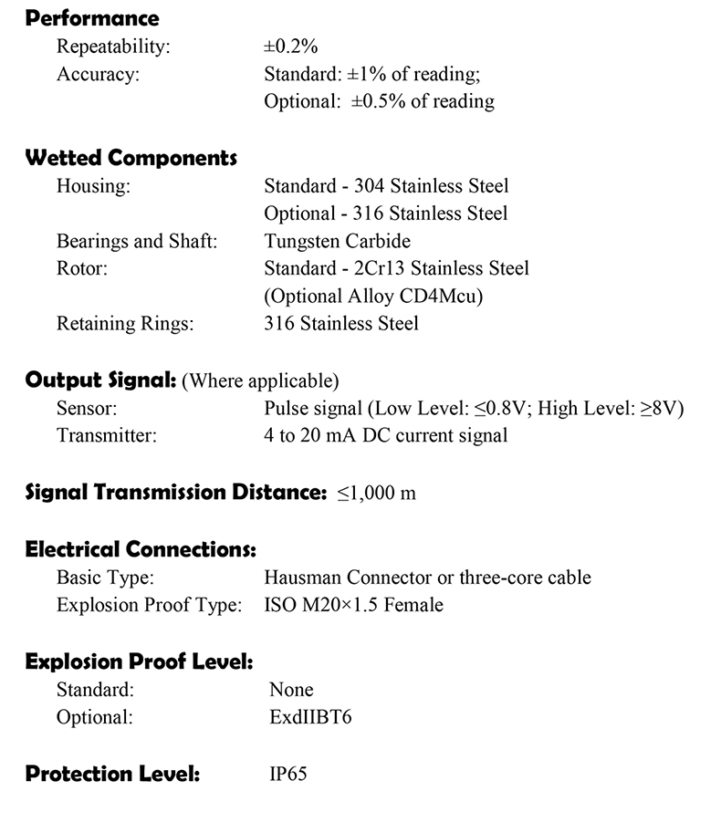 Turbine flow meters have the features: high accuracy, good repeatability,convenient installation/maintenance, simple structure etc.